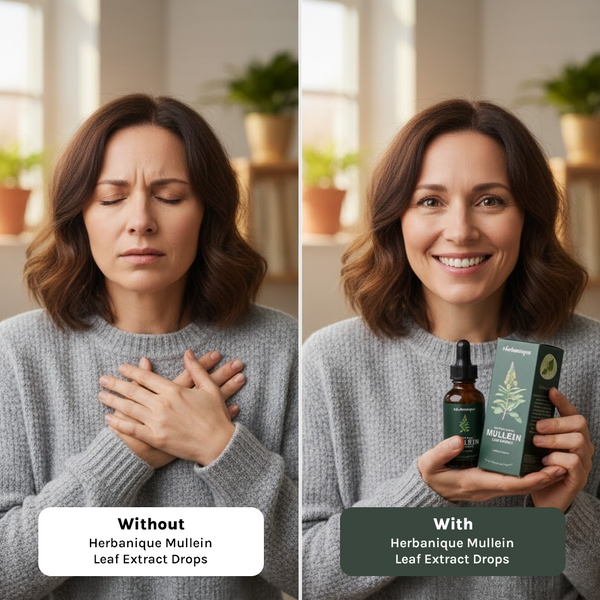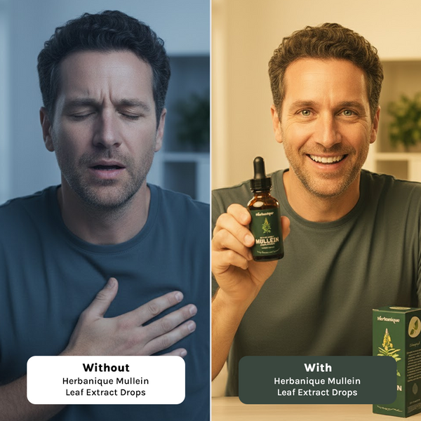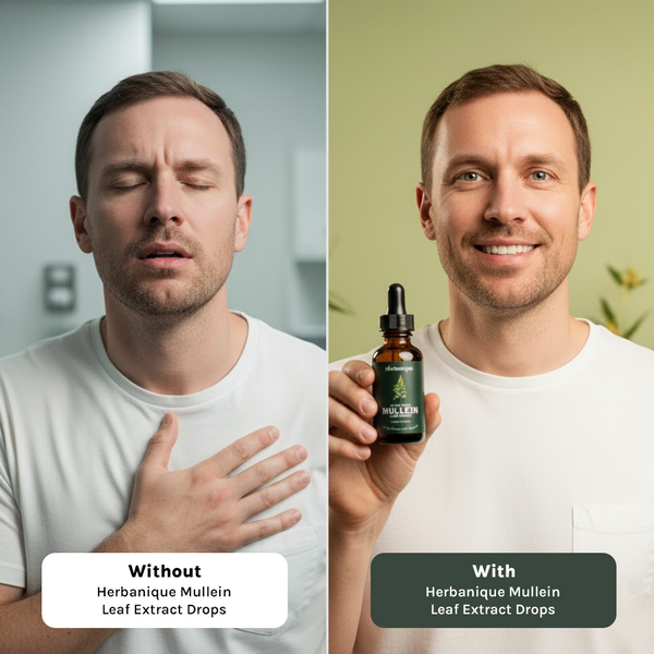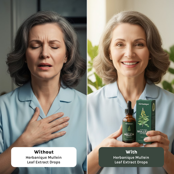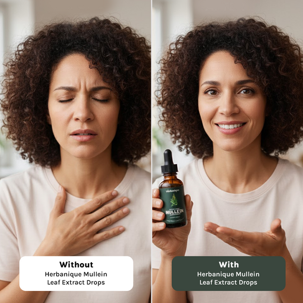 Because environmental factors, seasonal changes, and everyday stress can affect your throat and lungs leading to discomfort, congestion, or difficulty breathing. A natural extract like Herbanique Mullein Leaf Extract Drops helps restore balance, comfort, and clarity by supporting your body’s respiratory system from within.